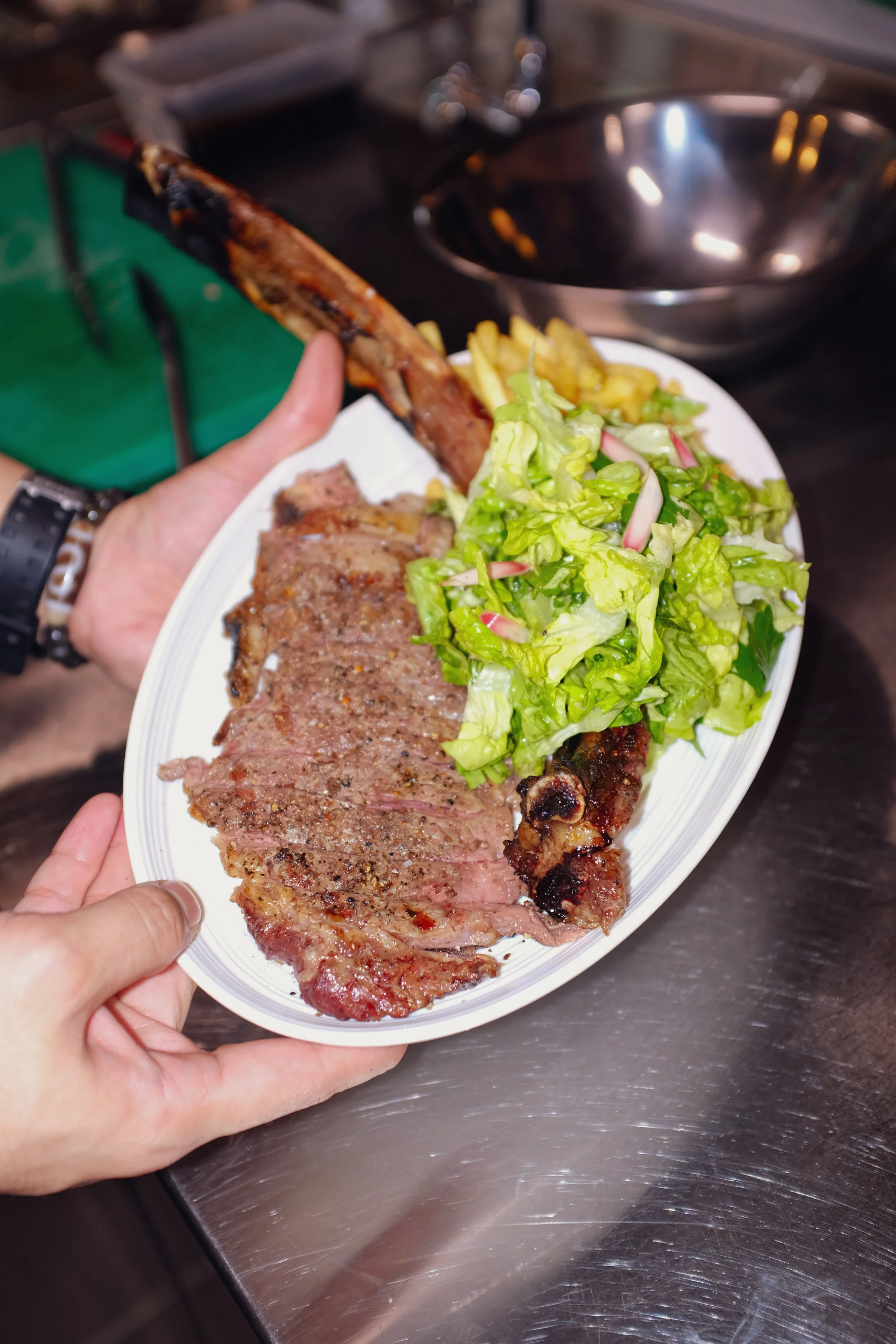 Augustus Tomahawk, shoestring fries, mixed salad